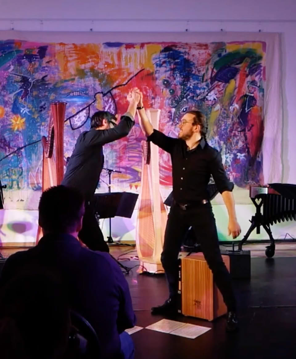 Wir sind harfussion - auf der Bühne ein Quartett - bestehend aus professionellen Musikern, die sich der Kunst der Musik verschrieben haben. Unser einzigartiger Klang entsteht durch die Verbindung von Harfe, Mallets wie Marimbaphon und Vibraphon und Percussion.