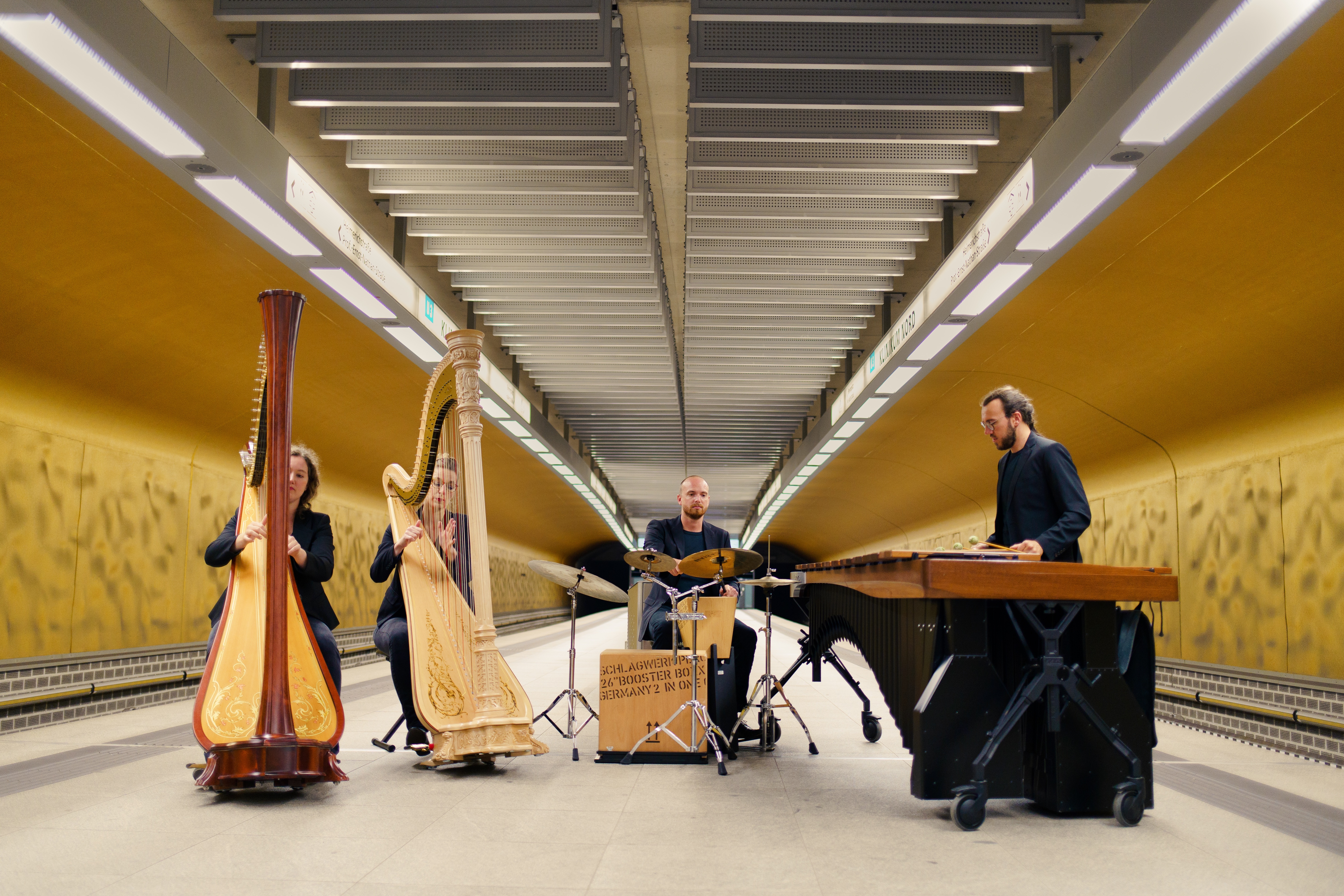 Zwei Harfen, Marimbaphon und Percussion. Eine Klangkombination die weit und breit seines Gleichen sucht.