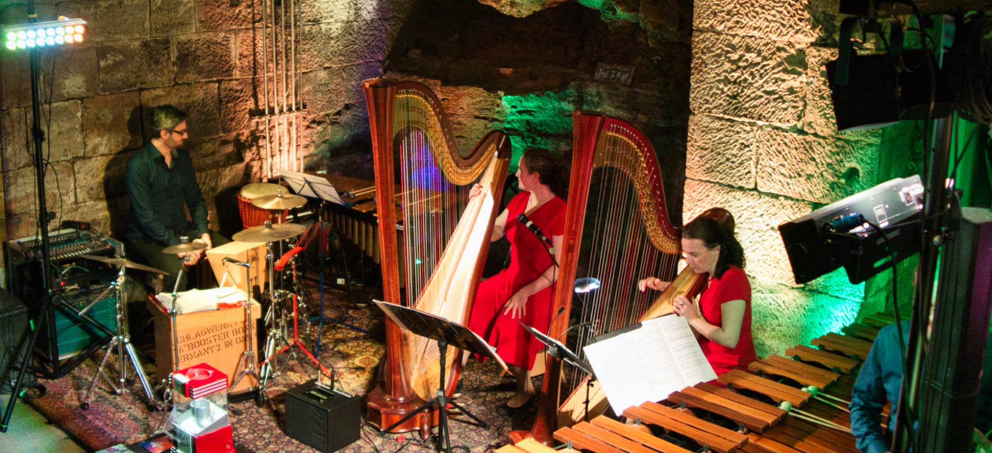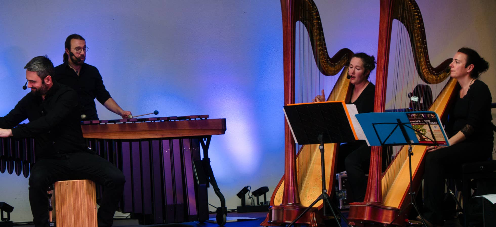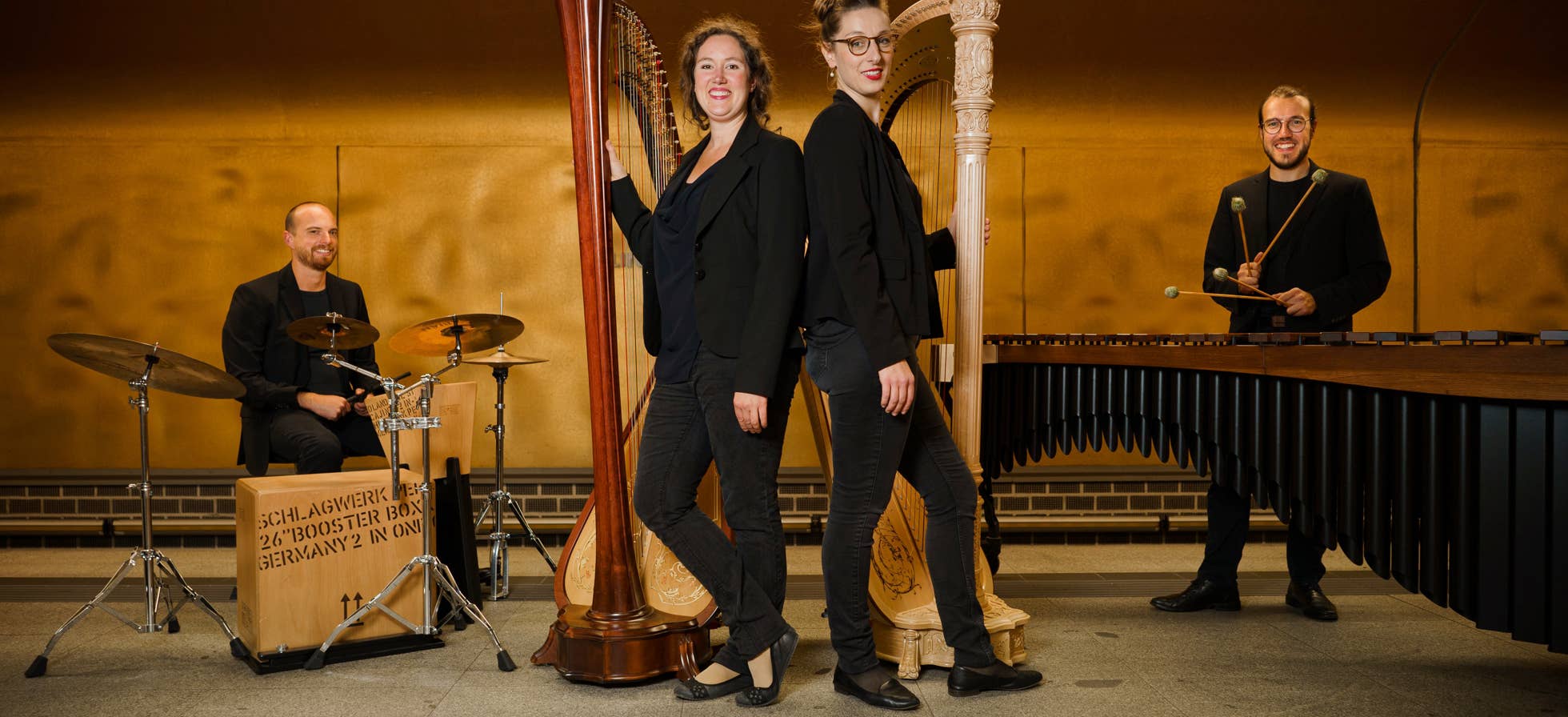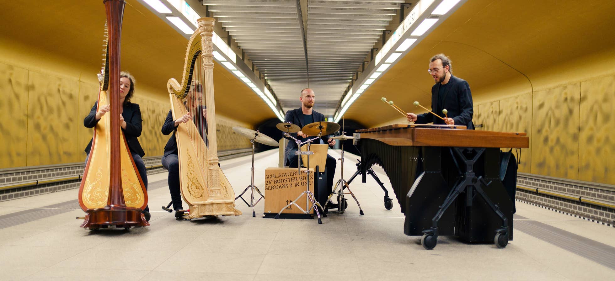 Wir sind harfussion - auf der Bühne ein Quartett - bestehend aus professionellen Musikern, die sich der Kunst der Musik verschrieben haben. Unser einzigartiger Klang entsteht durch die Verbindung von Harfe, Mallets wie Marimbaphon und Vibraphon und Percussion.