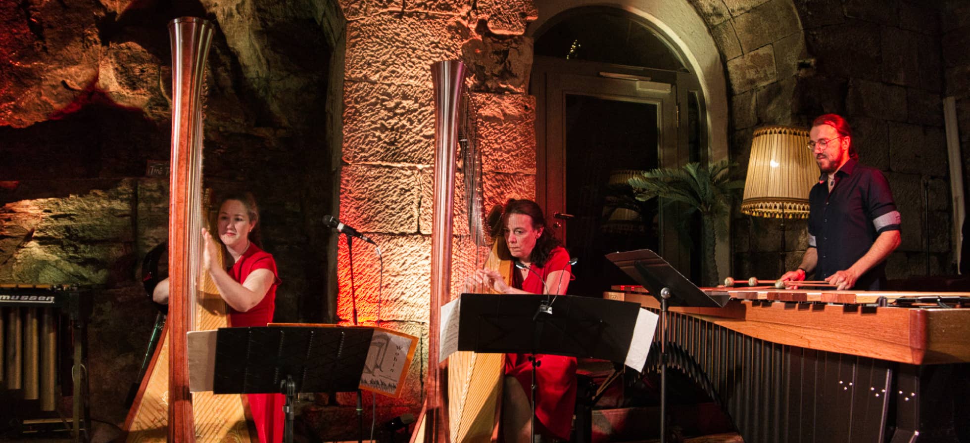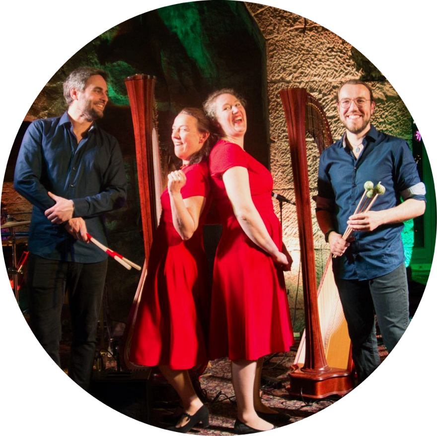Wir sind harfussion - auf der Bühne ein Quartett - bestehend aus professionellen Musikern, die sich der Kunst der Musik verschrieben haben. Unser einzigartiger Klang entsteht durch die Verbindung von Harfe, Mallets wie Marimbaphon und Vibraphon und Percussion.