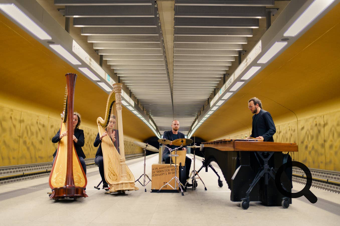 Zwei Harfen, Marimbaphon und Percussion. Eine Klangkombination die weit und breit seines Gleichen sucht.